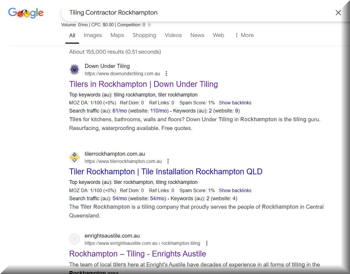 Rockhampton based tiling company ranked organically positions 1-3 for multiple keywords across central QLD. This company previously did not even have a website.
